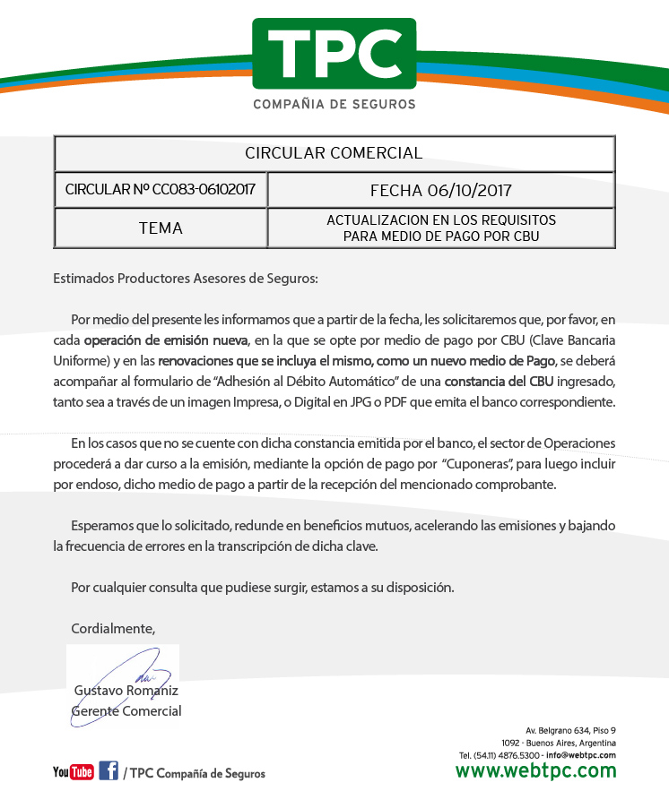 Los Productores Asesores de Seguros que formen parte de la red comercial de TPC tienen acceso con clave personal al sitio web de consulta de operatorias y de acciones comercial administrativas de TPC. Entre otras funciones, nuestros Productores pueden realizar y consultar allí: